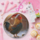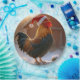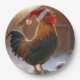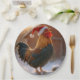 Crowing Christmas Rooster Wearing a Santa Hat Paper Plate