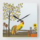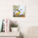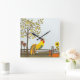 Crowing Rooster on Fence Square Wall Clock