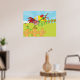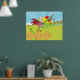 A crowing rooster standing on a farm fence. This design looks really effective on these Poster