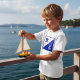 A crown and anchor set on blue and white. This design looks really effective on this Boys T-Shirt