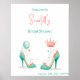 Featuring elegant mint green high heels, a sparkling pink crown, and floating hearts and balloons, this design is perfect for princess-themed birthdays, bachelorette parties, or any girly celebration. The soft watercolor style adds charm and sophistication, while the feminine details create a fun and fabulous vibe.