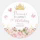 Crown | Butterflies Floral Princess 1st Birthday Classic Round Sticker