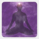 The Crown Chakra is located at the top of the head and is a state universal energy and higher awareness. Purple and white are both associated with the Crown Chakra. The Sahasrara chakra shown here with meditating silhouette and the Flower of Life. Panel 7 0f 7