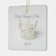 Christmas ceramic ornament is shown with a lovely silver crystal and pearl crown photo print.