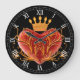 Crown Filigree Heart Round Roman Numerals Clock
