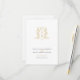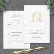 Crown crest with foliage hand drawing monogrammed wedding RSVP. In classic shades of white and gold with black text. Matching invitations and other matching items and colour options available. © Original heraldry drawing and design by Sarah Trett for www.mylittleedenweddings.com on zazzle.