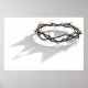 A 3D render concept of branches of thorns woven into a crown depicting the crucifixion casting a shadow of a royal crown on isolated white background