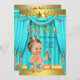 Crown Prince Baby Shower Gold Aqua Teal Brunette Invitation