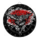 Original design of a black crow flying. Created with pencils, pens and coloured digitally.