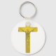 This design is a crucifix. The crucifix is done in gold. This crucifix design looks great on this Keychain