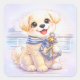 Set sail with this adorable die-cut sticker featuring a cheerful puppy dressed in a sweet sailor scarf, holding a nautical anchor with a glowing star detail. With soft pastel tones, warm sunset lighting, and a dreamy cruise ship backdrop, this design captures the magic of ocean adventures and carefree summer days.
