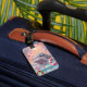 I was happy with the acrylic tag but it came with a thin leather strap to attach the tag to luggage (like a cat collar). I replaced the strap with a metal ring off of a key ring as the leather strap would come undone or break easily as luggage is sometimes handled without much care by airlines. Printing is great. Colours and positioning of the design I put on the tag were perfect. Very pleased.