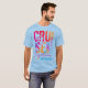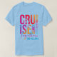 Custom name and date family cruise vacation tshirt. Bright and colourful retro 80's style design with two lines of custom text. Celebrate your next cruise in style with this custom message t-shirt. Perfect for groups. Matching women's and kid's styles are available.