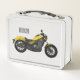 This is a standard metal lunchbox that appears to work just fine. We designed this box ourselves with an uploaded photo and custom text on the front and back. It looks absolutely beautiful except the front of the lunchbox is not centered like it shows in the photo. The print borders don't align with the inset flat part of the box where the preview photo online showed it perfectly centered in there. The back looks nice and centered though.