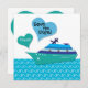 Cruise ship themed Save the Wedding Date Cards, 2-sided, perfect for couples tying the knot on a cruisehip or on the high seas for a boat or nautical wedding. Features blue and teal green hearts, waves and ship. Customise these Wedding save the date cards on both sides with your wedding date and the bride and groom's names! Perfect paired with our matching cruise ship wedding magnets, stamps and cards.