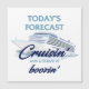 Add a touch of nautical humor to your cruise cabin with this square door magnet. Featuring the phrase "Today's Forecast: Cruisin' with a chance of Boozin'", this magnet is a must-have for any fun-loving cruiser.