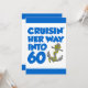 Cruising Her Way Into 60 cool birthday invite featuring a cartoon anchor. Celebrate someone turning sixty with this cool, boat themed invitation. Great for someone who is about to take a cruise or that loves boats.