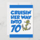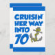 Cruising Her Way Into 70 cool birthday invite featuring a cartoon anchor. Celebrate someone turning seventy with this cool, boat themed invitation. Great for someone who is about to take a cruise or that loves boats.