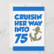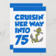 Cruising Her Way Into 75 cool birthday invite featuring a cartoon anchor. Celebrate someone turning seventy-five with this cool, boat themed invitation. Great for someone who is about to take a cruise or that loves boats.