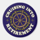 Cruising into retirement! Funny cruise ship stateroom door magnet with a ship's wheel and rope graphic and quote