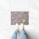The beach, in the original photograph by ZoeSPEAK on this doormat, was made of crushed sea shells in the sand, tiny bits of colour in many subtle, natural tones like pale peach, salmon, ivory, pale blue and dark greys. The pattern makes a simple, modern statement. On the mat is a yellow postit sticker which says "Welcome". This can be changed or removed if you prefer.