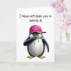Crying penguin wearing I miss you pink cap Card