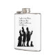 The flask itself is fine. It’s a cheap flask, obviously bought in bulk, however am prepared to overlook that. Given that it is a personalized item, I would have liked to have seen gift boxing instead of the generic packaging. Terrible printing, and/or quality. It’s a cheap, tacky vinyl. It is not cut straight and is also applied in a way that it is overhanging the bottom, causing the glue to catch on items and it will eventually roll and tear, damaging the wrap.