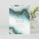 An eye-catching combination of a deep ocean blue, teal and white marbled agate, textured with faux-crystals and highlighted in glittering gold creates the background for the pieces in this coordinated collection. A clean, modern serif font and sprinkled specks of gold complete this striking design style. This elegant wedding Save the Date card features all the above with a soft, watercolor background, a shimmering teal texture on the back and a template to easily add your names and wedding date. View the collection link on this page to see all of the matching items in this beautiful design or search ID825 to see additional color choices for this set.