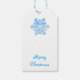 Crystal blue snowflake design against a white background with text Merry Christmas
