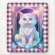 Crystal Cat Purple Black Plaid Cute White Kitten Mouse Pad