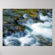 This stunning photograph captures a view of a crystal clear mountain stream in the Los Glaciares National Park, Patagonia, Argentina, taken from