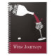 Pretty wine bottle pouring red wine into a decorative crystal wine glass on this notebook for caterers, sommelier, or bartender, wine sellers and wine tasting parties or tours. Black and white with deep raspberry wine.