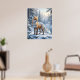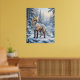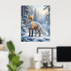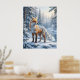 A graceful fox stands alert in fresh snow, enhanced with dazzling crystal formations across its tail, shoulders, and ears. Clear quartz textures, pale blue highlights, silver reflections, and subtle prism sparkle blend wildlife realism with luxurious fantasy design. Frosted pine trees, icy stones, soft dawn light, and drifting winter mist create a peaceful enchanted forest atmosphere. Elegant and collectible, this artwork is perfect for winter décor, woodland interiors, fox lovers, cozy cabins, and gift shoppers seeking refined animal wall art.