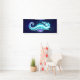 Sparkling, crystal, icy, polygonal, seahorse on dark blue background.
