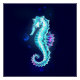 Sparkling, crystal, icy, polygonal, seahorse on dark blue background.