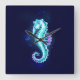 Crystal Ice Seahorse on Blue Background Square Wall Clock