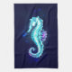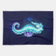 Crystal Ice Seahorse on Blue Background Tea Towel