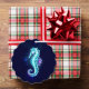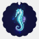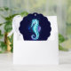 Crystal Ice Seahorse on Blue Background Tree Decoration Card