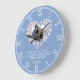 Crystal heart wedding anniversary clock customise with your own couples photo, year of marriage, and names or relationship to you. The example reads Maria and Preston Martinez 3rd Crystal Wedding Anniversary and your marriage and anniversary date or message. The modern third-anniversary gift is crystal (or glass), which has a special reflective transparent beauty. Other matching items are available. Crystal heart effect graphic art and design by Sarah Trett for www.mylittleeden.com