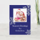 Photo illustrated crystal snowflakes accent your family picture on this personalised holiday card.