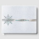Pretty Winter wedding guest book done in a snowy silvery background. A beautiful crystallised silver tone and light teal snowflake decorates the front and back of the book A silver tone ribbon, across the front of the guest book, has blue text ready to personalise with the bride and groom's names. Matching products available.
