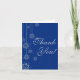 Crystal snowflakes blue wedding Thank You photo note card that features printed hanging crystal snowflakes and snow on medium royal blue background and your photo on the left inside. A modern and contemporary design for your winter December or Christmas wedding. This retro template design is part of a wedding set, is fully customisable and can be personalised. Note that there are not any real crystals or jewels or strass but they are flat printed images.