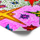Abstract drawing using crystal flake shapes with bright colours in the forefront. In the background dots divided by various colours.