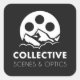 Logo on black background on glossy sticker. its fun to buy these stickers. just think of all the fun you could have with your very own collective scenes & optics sticker.