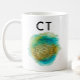 A CT mug featuring an abstract design inspired by computed tomography imaging. Concentric rings suggest the layered, cross-sectional nature of scanning, surrounded by a loose watercolor wash in teal and warm gold tones. A thoughtful gift idea for a CT technologist, radiology or medical imaging team member who works in this specialty department.