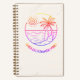 A beige notebook featuring a line art logo of a tropical beach scene in warm colours (orange, yellow, blue, light brown). The logo includes a stylised sun, ocean waves, a palm tree, and a surfboard. Below the logo, the text "Endless Summer Vibes" is written. This notebook embodies the summer, beach, and vacation spirit with a tropical feel, featuring elements like the sun, ocean, palm tree, and surfboard. Ideal for capturing summer memories and embracing the endless summer aesthetic.