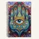 An artistic and detailed representation of the hand of Fatima, a powerful symbol of protection and good fortune, adorned with intricate designs and an all-seeing celestial eye.