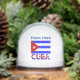 Personalised snow globe features the Cuban flag in light blue stripes. Below is the word CUBA, in the colours of the flag. Above is a place for a name in blue letters. Cool stocking stuffer or holiday gift.