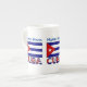 Personalised bone china mug shows the Cuban Flag and the word CUBA below the flag and it matches! Uses dark blue stripes. Above, a spot for your name, on blue letters, so you can create a personalised look or housewarming gift. Design shows on three sides of mug.