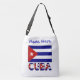 Personalised crossbody bag shows the Cuban Flag and the word CUBA below the flag. Uses dark blue stripes. Above, a spot for your name so you can create a personalised look or gift. Fun for travel groups and travelers.